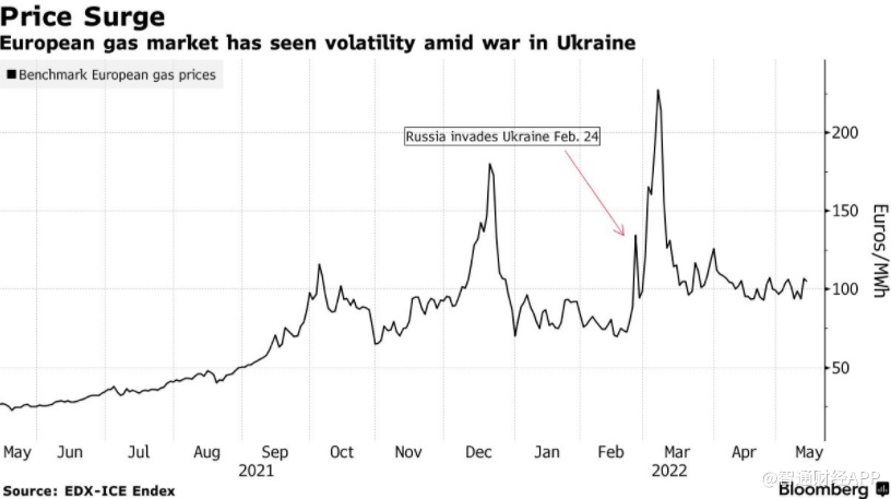 尽管欧洲天然气价格已从俄乌冲突爆发后触及的创纪录水平回落,但仍处于高位。基准天然气期货价格目前接近每兆瓦时100欧元,大约是一年前水平的四倍。