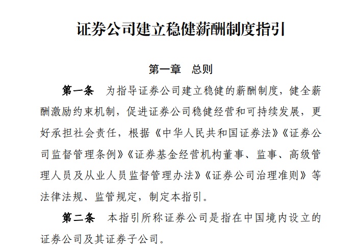 中证协指出在本次发布的《指引》中强调,引导证券公司建立稳健的薪酬制度,是夯实证券行业高质量发展基础的重要举措,也促进行业稳健经营和可持续发展的重要保障。