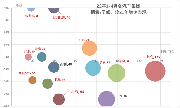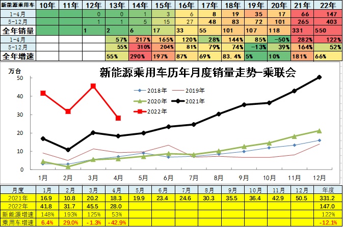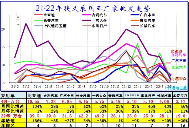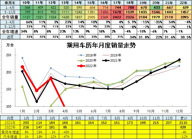 根据乘联会信息,2022年4月乘用车厂家批发销量增速-43%,是历年较差的,但强于汽车市场走势。