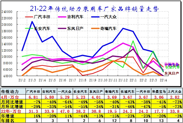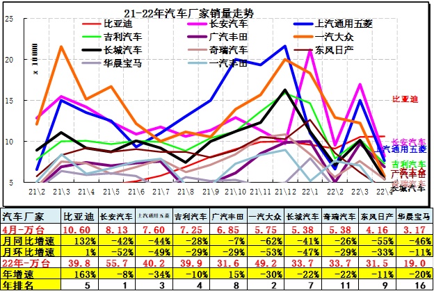 由于4月车市的销量受干扰因素多,因此厂家走势并不代表未来可持续趋势。