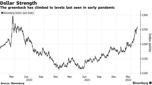 不断飙升的美元正在推高借贷成本、加剧金融市场波动,从而将全球经济进一步推向增长同步放缓的境地,而且眼下几乎看不到任何喘息的机会。