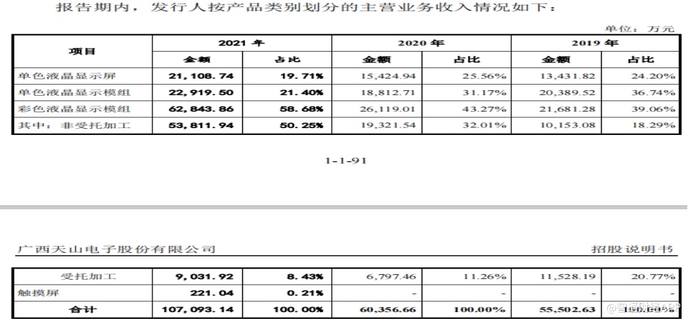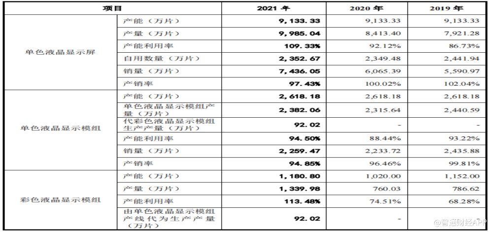 通常,业务链条中包含生产环节的公司,产能和产能利用情况是影响公司业绩增长的关键要素之一。天山电子招股书显示,公司单色液晶显示屏、单色液晶显示模组及彩色液晶显示模组2021年的产能利用率分别达到109.33%、94.5%和113.48%。