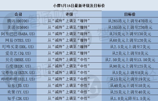5月16日,摩根大通突然对中国互联网科技股“全面看多”,集体上调了中国互联网科技股的评级、目标价。其指出,正在重新审视短期和长期基本面前景,中国互联网行业正在摆脱各种不确定性,未来头部公司的股价或将超预期上涨。其次,华尔街“顶流”机构已经掏出真金白银抄底中概股。其中,摩根大通的旗舰中国基金在一季度大举加仓了京东,加仓幅度达1253%;桥水基金、福达国际也增持了腾讯、阿里巴巴、美团、拼多多、百度等多只中国互联网科技股。