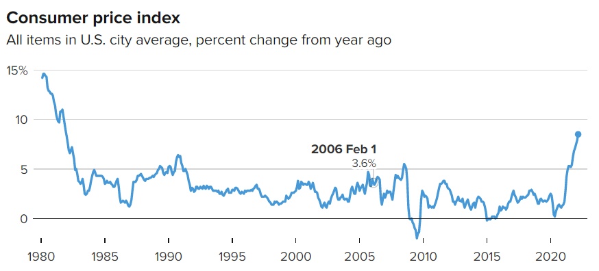 上述调查结果出炉之际,美国通胀率正徘徊在近40年来的高点,4月份同比增幅为8.3%,略低于3月份8.5%的增幅,但仍超预期。根据穆迪分析公司的一项分析,美国家庭每月的支出比去年同期增加了341美元。