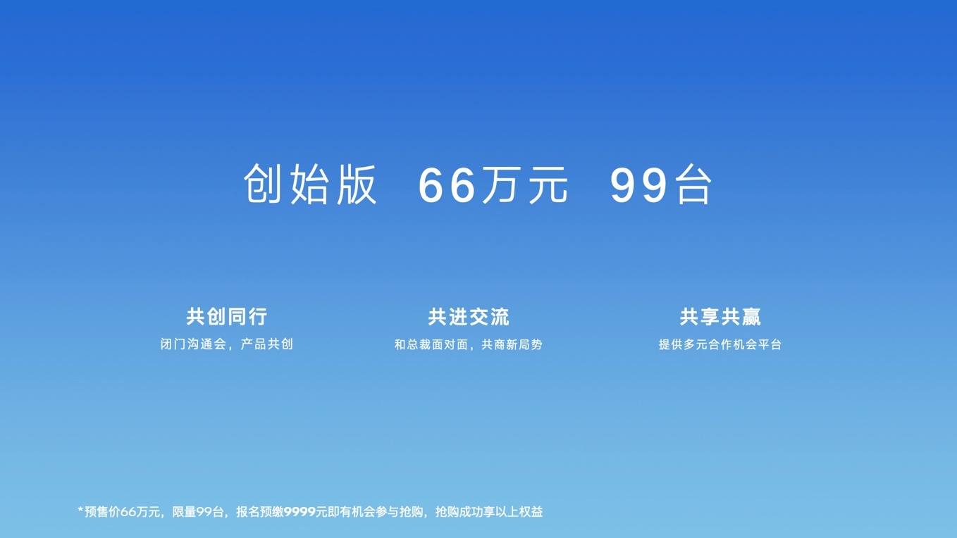 在此次发布会上,腾势品牌全新战略下的首款车型——腾势D9正式开启预售,共带来DM-i超级混动和纯电共6个配置版本,预售价格区间为33.5万元-46万元;另外,还推出一款创始版车型,预售价为66万元,限量发售99台。
