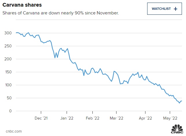 自去年11月以来,Carvana的股价已经下跌了近90%,其原因既有市场环境的变化,也有自己造成的伤害。许多传统经销商继续报告创纪录或接近创纪录的业绩,进一步揭示了Carvana的问题。