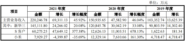 如果说新华三是菲菱科思的基本盘,那么S客户则为公司实现高速增长立下“汗马功劳”。期内,菲菱科思对S客户销售金额分别为1622.63万元、1.26亿元、6.03亿元。