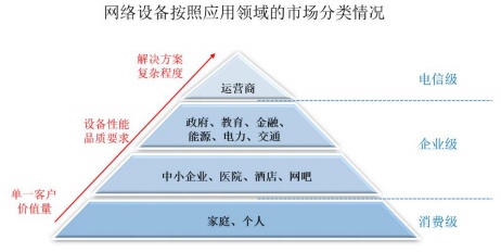 要回答上述问题,还是需要先将目光转到行业。就菲菱科思所处的网络设备行业来看,网络设备可算作是互联网底层的基础设施,属于信息化建设的基础架构产品。就应用领域划分,网络设备可以分为电信级、企业级和消费级。