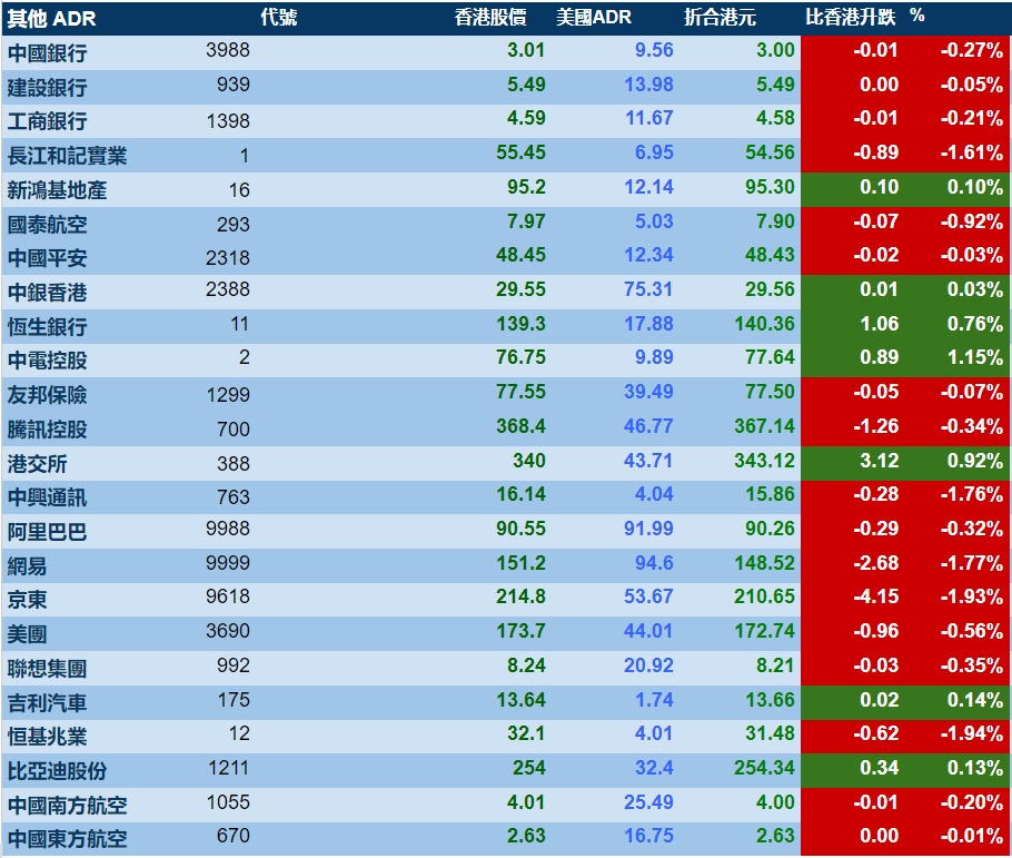 智通财经APP获悉,周二美股三大指数悉数上涨,港股ADR指数上涨,按比例计算,收报20632点,较香港收市涨29.90点或0.14%。