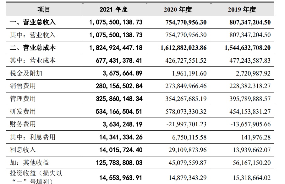 2019年、2020年、2021年,公司分别实现营业收入 8.0735亿元、7.5477 亿元和 10.7550 亿元,最近一年营业收入金额超过 3 亿元,2020 年受疫情影响收入下降 6.51%,2021 年较上年同期增长了 42.49%。归属于母公司所有者的净利润分别为-6.3960 亿元、-8.1293 亿元和-6.3213 亿元,尚未实现盈利。截至 2021 年末,公司合并口径累计未分配利润为-22.1584 亿元,存在大额未弥补亏损。