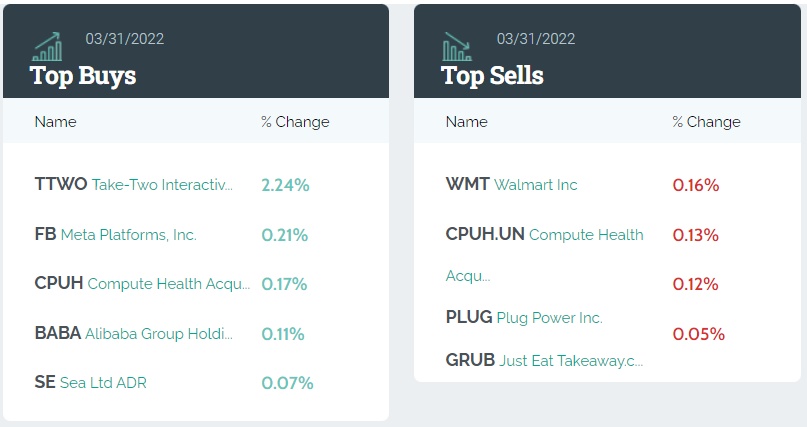 前五大卖出标的分别是:沃尔玛(WMT.US)、Compute Health Acquisition Corp. (CPUH.UN)、普拉格能源(PLUG.US)、Just Eat Takeaway.com NV。