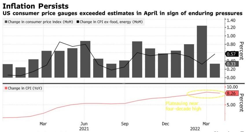 美联储本月稍早加息50个基点,美联储主席鲍威尔暗示将在6月和7月的会议上也加息50个基点。此后,联邦公开市场委员会(FOMC)的鹰派和鸽派官员均支持该计划。