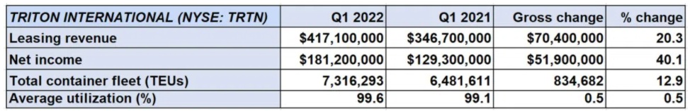 由于二手市场销售的旧集装箱价格下降,Triton预计第二季度的利润将低于2022年第一季度。