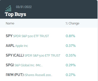 从持仓比例变化来看,前五大买入标的分别是:标普500指数ETF(SPY.US)、苹果(AAPL.US)、标普500指数ETF看涨期权(SPY.US,CALL)、标普全球(SPGI.US)、安硕罗素2000ETF看跌期权(IWM.US,PUT)。