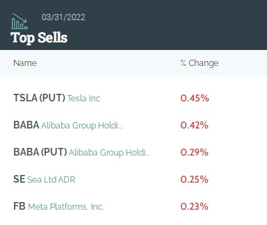 前五大卖出标的分别是:特斯拉看跌期权(TSLA.US,PUT)、阿里巴巴(BABA.US)、阿里巴巴看跌期权(BABA.US,PUT)、Sea(SE.US)、Meta(FB.US)。