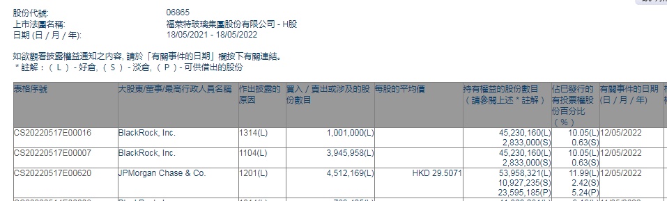 智通财经APP获悉,香港联交所最新资料显示,5月12日,小摩减持福莱特玻璃(06865)451.2169万股,每股作价29.5071港元,总金额约为1.33亿港元。减持后最新持股数目约为5395.83万股,最新持股比例为11.99%。