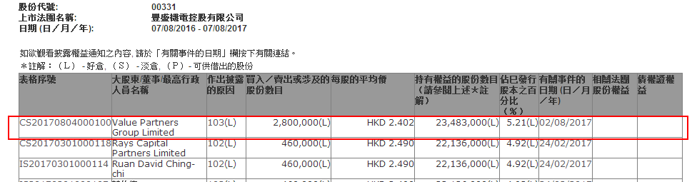 惠理基金管理增持丰盛机电(00331)280万股 持股量5.21%
