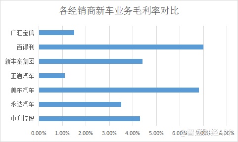 不过,据智通财经APP了解,与同行业港股上市汽车经销商对比,广汇宝信新车销售毛利率仅为1.5%,尽管比起2020年的1.2%有所增长,但仍远低于同业:中升控股(00881)、新丰泰(01771)等新车销售毛利率均为4%以上,百得利(06909)和美东汽车则实现了近7%的高毛利率。
