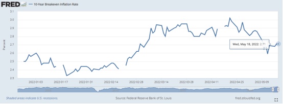 最后,落到实质上,则是高通胀+美联储加息周期等多重压力之下,消费者信心及预期备受打压,零售巨头通过商品涨价转嫁给消费者的那一部分营收增量完全不足以抵消营业成本这一市场预期,市场开始认为占美国GDP 7-8成的消费马车难以维持此前增速,最终导致市场对美国经济的“看跌”情绪空前浓厚:经济增速放缓成大概率事件,对于经济衰退的预期则持续上行,这也是最可怕的一点,这一“看跌”情绪可能导致美股深陷回调。