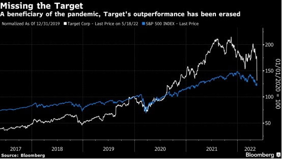 昨日美股零售巨头股价全线遭重挫,塔吉特(TGT.US)公布远不及市场预期的财报后,盘中一度跌超26%创下自1987年10月“黑色星期一”以来最大跌幅,截至收盘跌近25%,创2020年10月来最低股价,抹去疫情以来大部分涨幅。