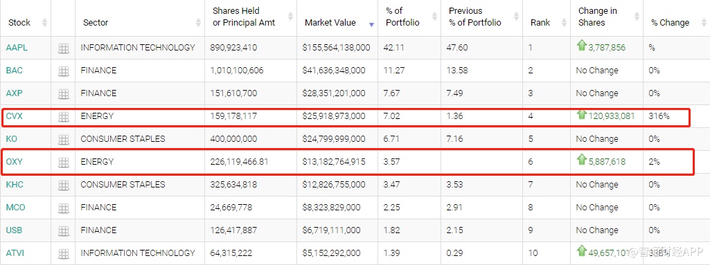 得益于能源股的优异表现,伯克希尔哈撒韦第一季度持仓总市值达3635.54亿美元,环比增长9.85%。