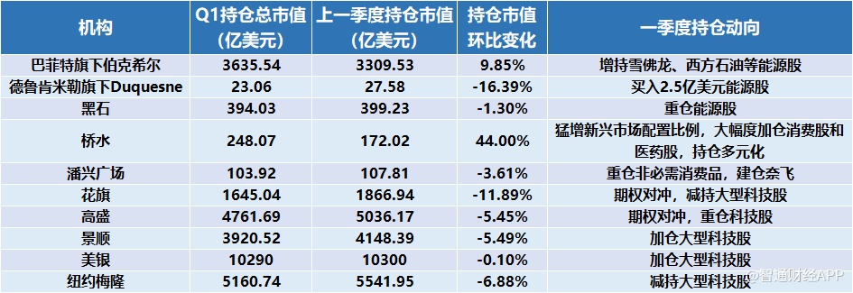 智通财经APP了解到,近日,桥水、花旗、高盛等多家华尔街机构披露了被称为“市场风向标”的13F季度持仓报告。让我们一起来看看大佬们是如何应对市场波动的。