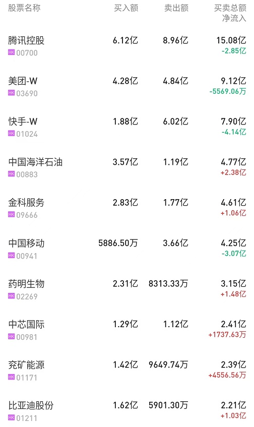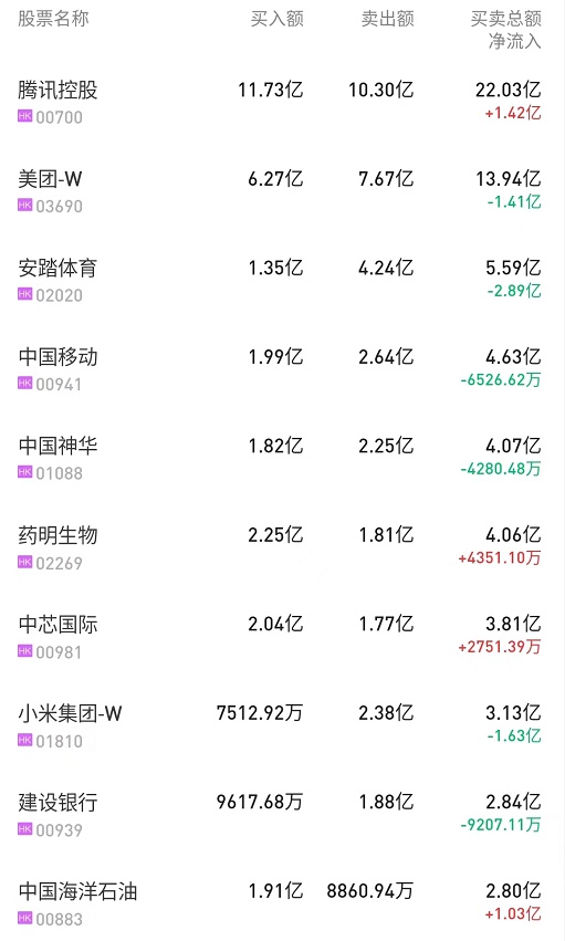 此外,中芯国际(00981)获净买入4489万港元。而中国移动(00941)、建设银行(00939)分别遭净卖出3.72亿、9207万港元。