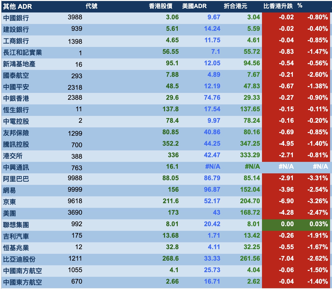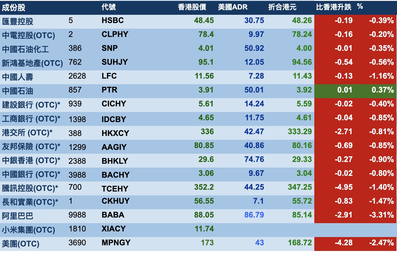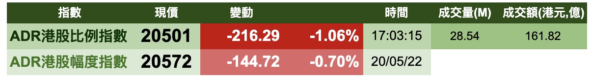 智通财经APP获悉,周五美股三大指数盘中暴跌,最终接近收平,港股ADR指数下跌,按比例计算,收报20501点,较香港收市跌216.29点或1.06%。