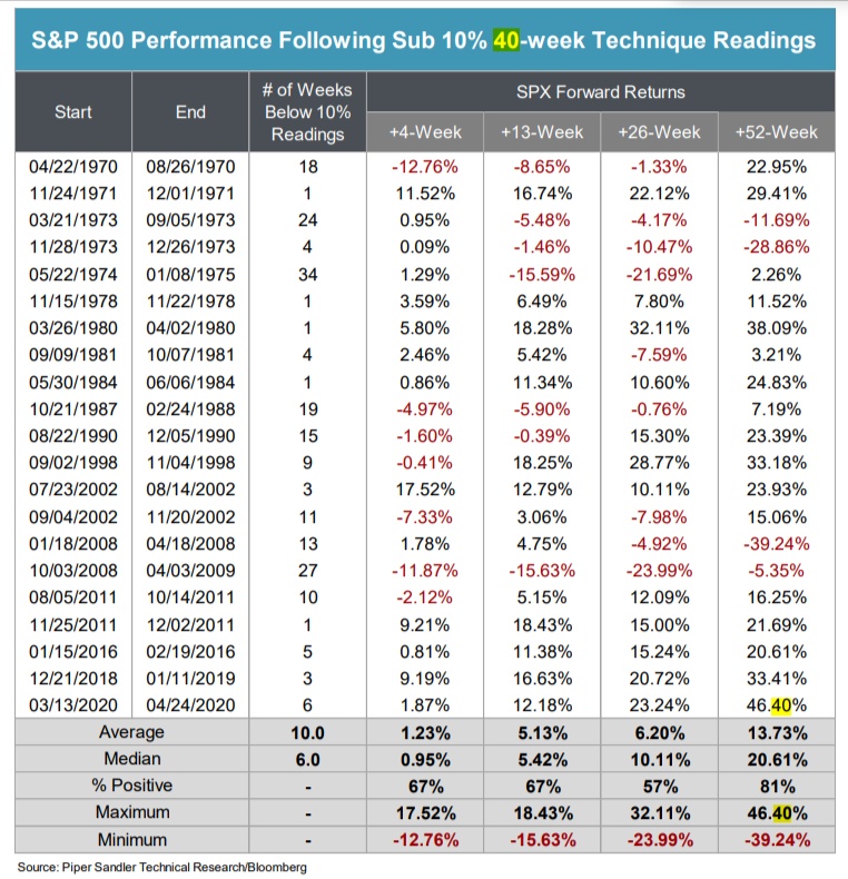 Piper Sandler首席市场技术分析师Craig W. Johnson也预计恐慌指数将触及40点,他使用了一项专有技术指标,他称之为" 40周技术",该指标衡量有多少只股票高于或低于40周移动平均线。