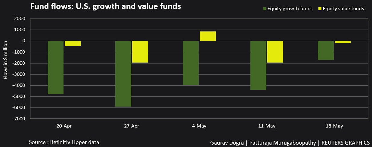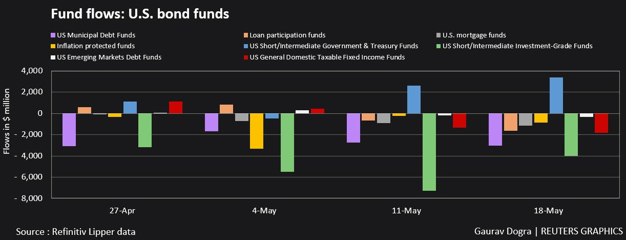 根据Refinitiv Lipper的数据,投资者连续第19周净抛售价值83.9亿美元的美国债券基金。