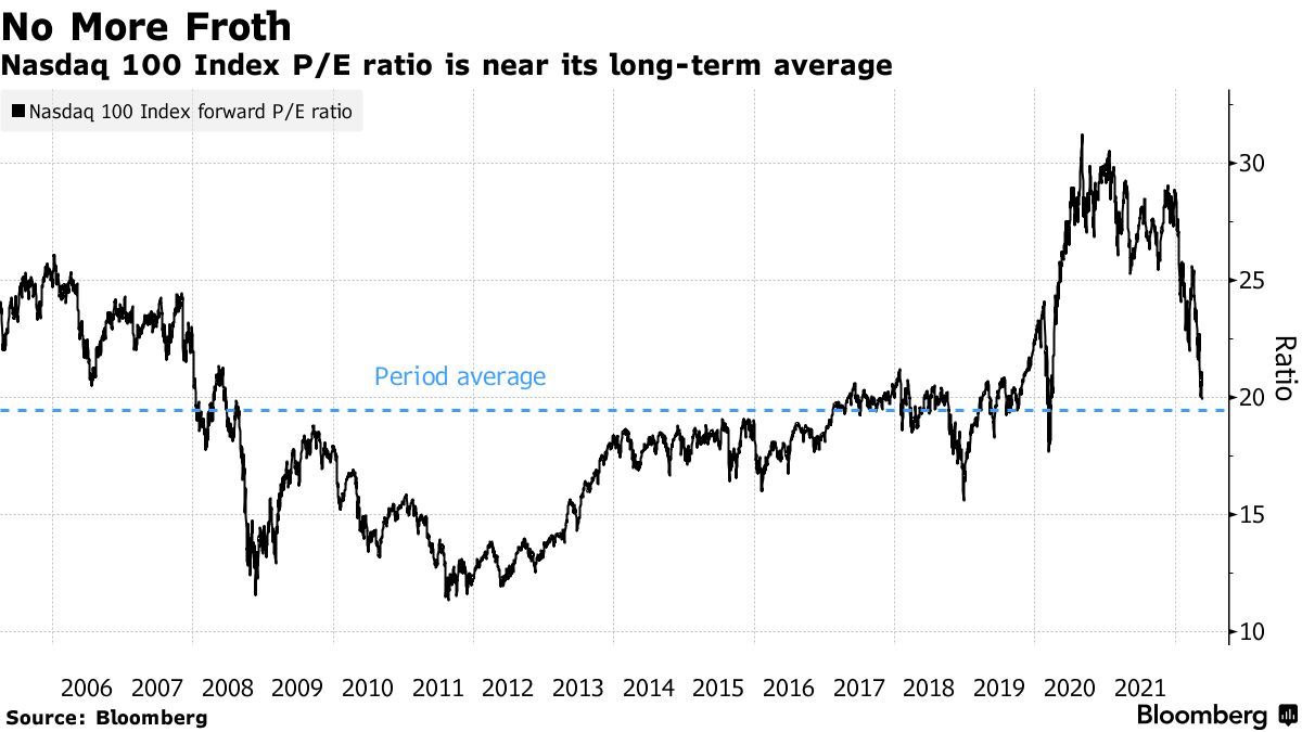 纳斯达克100指数预期市盈率接近长期均值