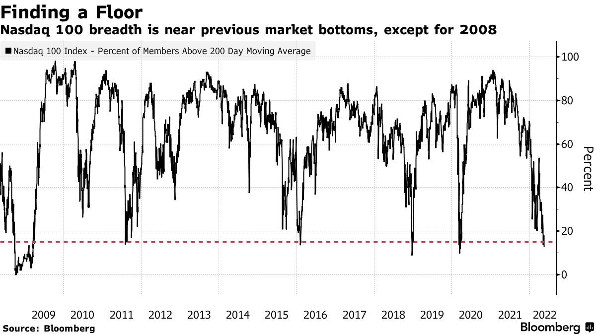 纳斯达克100指数的宽度接近以往的市场底部(不包括2008年)