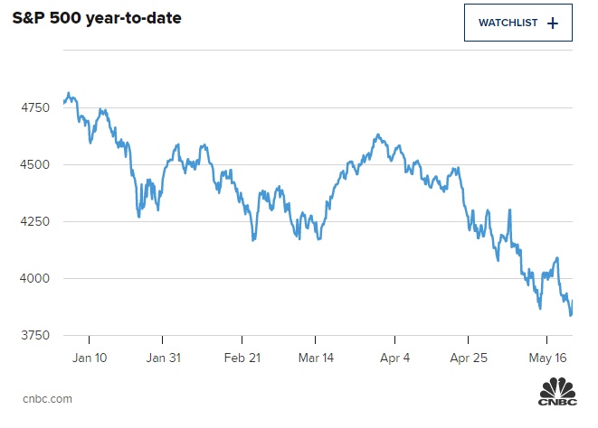 智通财经APP获悉,由于沃尔玛(WMT.US)和塔吉特(TGT.US)为首的零售商业绩黯淡凸显高通胀环境下的经济风险,令市场更担忧美联储难以实现软着陆,上周五,标普500指数自今年1月的纪录高位跌逾20%,跌入技术性熊市,此后凭借尾盘拉升,抹平日内跌幅,且暂时逃脱熊市区间。