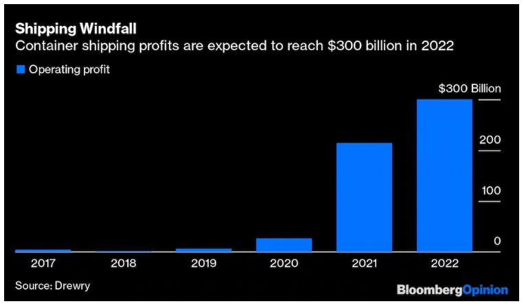 根据咨询公司Drewry Maritime Research的数据估计,到2022年底,集装箱航运业将从为期两年的供应链困境中赚取令人震惊的5000亿美元的营业利润。这些集装箱航运公司除了大肆派发股息和回购股票外,一些公司还计划利用这些利润打造成亚马逊和联邦快递(FDX.US)这样的物流巨头。