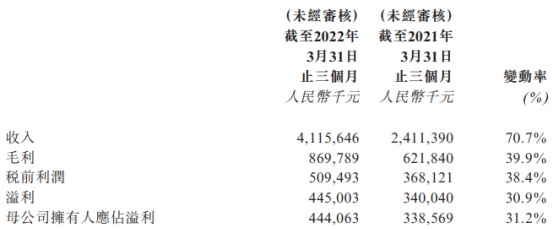 5月18日,三一国际发布2022年一季度财报。截至2022年3月31日止三个月,三一国际共计实现营业收入41.16亿元(人民币,下同),同比大增70.7%;实现归母净利润4.44亿元,同比增长31.2%。