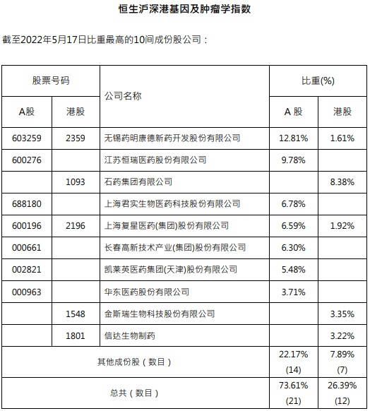 在基因学药品和创新药日渐发展成为对抗癌症及其他疾病主流疗法的趋势中,恒生沪深港基因及肿瘤学指数旨在追踪涉及基因或肿瘤学相关产品研发和服务的公司表现。