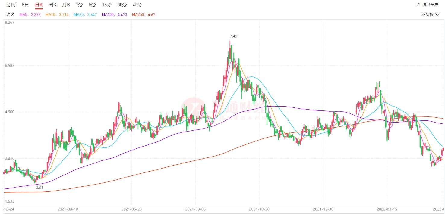 进入2022年后,正当投资者对中国铝业新一年的行情满怀期待之时,国内疫情的发酵使得其股价的涨势戛然而止。3月以来,中国铝业连续向下探底,至今不仅完全抹平了2月的涨幅,年内累计跌幅亦已达到双位数。