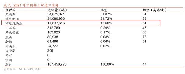 公开数据显示,2021年中国累计进口铝土矿10737万吨,其中印尼进口量占比约为16.6%,为中国铝土矿第三大进口来源国;2022年Q1,我国共进口印尼铝土矿676.8万吨,同比大增118%,占进口总量的20%。
