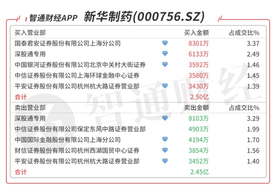 新华制药(000756.SZ):龙虎榜阵容豪华,深股通对倒净卖出1970万元,买一是顶级游资葛老大的席位买入7758万元,买三是知名游资苏南帮的席位买入3559万元,当日净买入2580万元,该股如果再创新高,则有望启动二波行情。