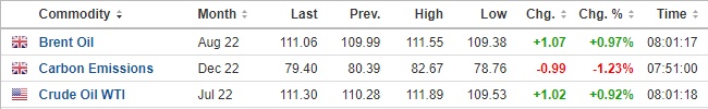 3. 截至发稿,WTI原油涨0.92%,报111.30美元/桶。布伦特原油涨0.97%,报111.06美元/桶。