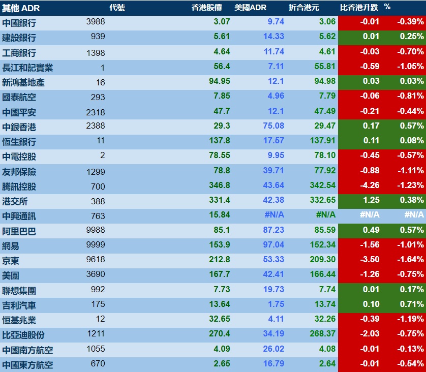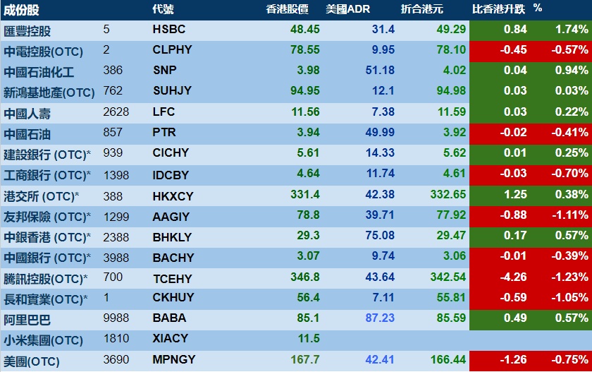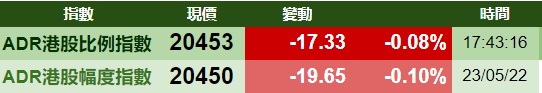 智通财经APP获悉,周一美股三大指数悉数上涨,港股ADR指数下跌,按比例计算,收报20453点,较香港收市跌17.33点或0.08%。
