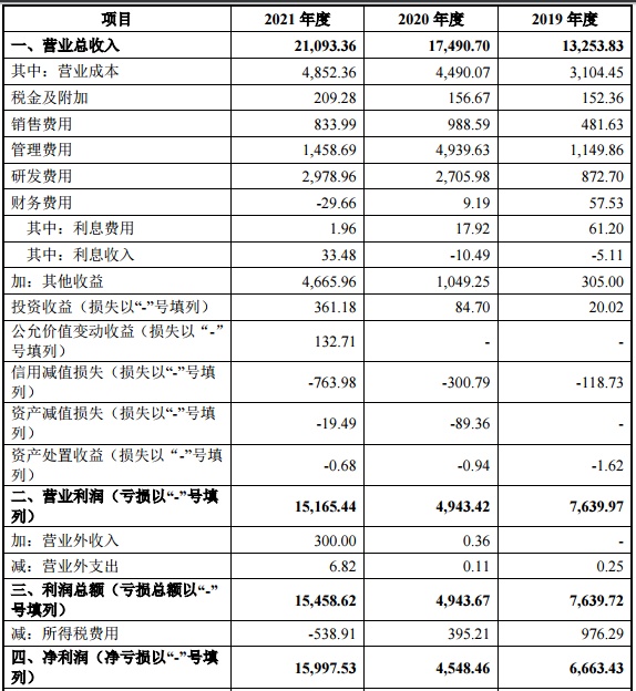 财务方面,于2019年度、2020年度及2021年度,铖昌科技年度营业收入分别约为1.33亿元人民币、1.75亿元人民币、2.11亿元人民币。公司营业利润分别约为7640万元人民币、4943.4元人民币、1.52亿元人民币,公司净利润分别约为6663.4万元人民币、4548.5万元人民币、1.60亿元人民币。
