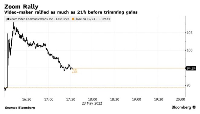 智通财经APP获悉,美东时间5月23日美股盘后,Zoom(ZM.US)公布了2023财年第一季度财报。其中,该公司对第二季度的营收和利润的指引均超出了市场普遍预期,这表明,这家软件供应商对疫情过后维持增长充满信心。因此,财报公布后,该股盘后一度涨逾21%,但随后回落至约6%。