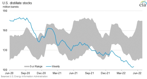 此外,主要用于公路和铁路货运、制造业、建筑业、农业、采矿业以及石油和天然气开采的美国馏分油库存已经跌至2005年以来最低水平,截止5月6日的周度数据显示,其库存仅为1.05亿桶。