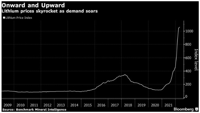 如今,对电动汽车及电池的需求推高了电池金属的价格,甚至引发了对锂、钴和镍等材料短缺的担忧。锂供应尤为令人担忧,因为电动汽车电池中没有锂的替代品。一项衡量锂价格的指数在去年飙升280%后,今年前四个月继续上涨了一倍多。