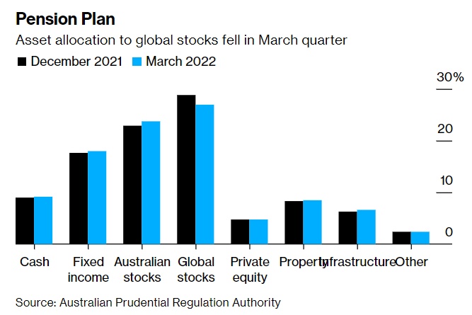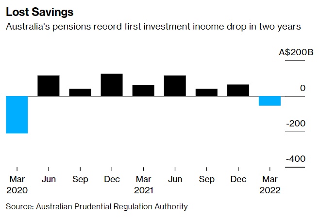 根据澳大利亚审慎监管局的数据显示,由于股市波动加剧,养老基金投资损失550亿澳元,为两年来首次下降。固定收益和房地产等防御性资产也出现了下跌。另外,为了符合对俄制裁,澳大利亚的养老基金还被要求出售其在俄罗斯的资产,即使这意味着巨大的损失。