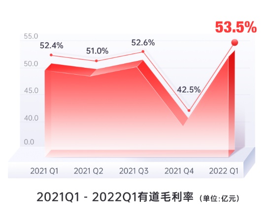 报告期内,有道整体毛利率再上一个新的台阶,达到53.5%。