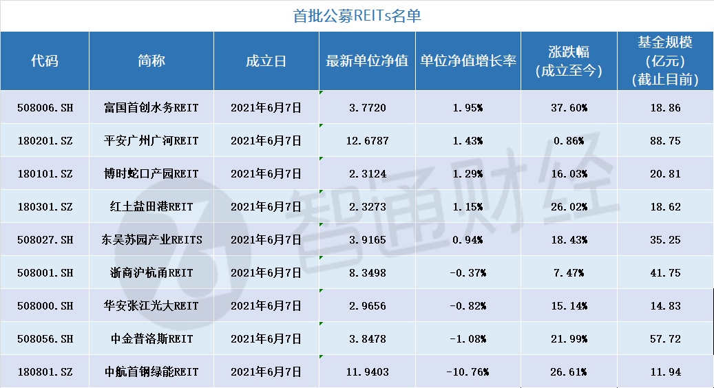 具体来看,这9只REITs产品分别为博时蛇口产园REIT、平安广州广河REIT、红土盐田港REIT、中航首钢绿能REIT、华安张江光大REIT、浙商沪杭甬REIT、富国首创水务REIT、东吴苏园产业REIT、中金普洛斯REIT。