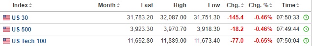 1. 5月25日(周三)美股盘前,美股三大股指期货齐跌。截至发稿,道指期货跌0.46%,标普500指数期货跌0.46%,纳指期货跌0.65%。