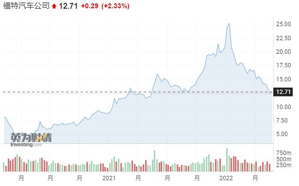 随着股价下跌,福特股价上周也触及12.07美元的52周低点;较1月13日触及25.87美元的52周高点下跌了53%。